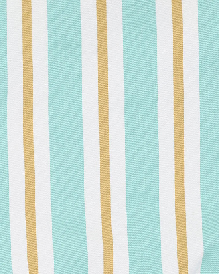 Keep little faces shaded in style with this fun and functional Surfs Up Stripe Sunhat. Featuring a breezy aqua and mustard stripe and an adjustable cord, it's perfect for sunny-day adventures. Match it back with the Surfs Up Stripe Overall for the complete beach-ready look.