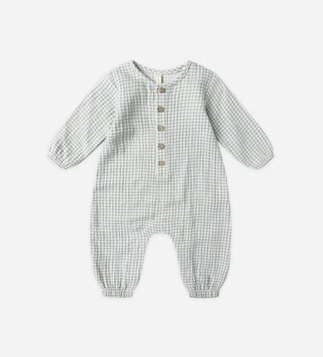 Quincy Mae Woven Jumpsuit || Blue Gingham