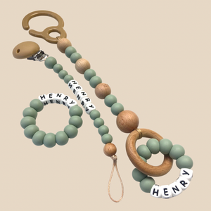 Nature Bubz PERSONALISED Dummy clip, teether and pram toy set (3pc) BUNDLE + SAVE
