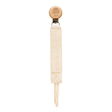 Easy to use; simply pass the cord loop through the handle of a dummy, then thread the wooden clip end through the cord loop, securing the loop tightly at the dummy handle. Then open the clip, and attach to your baby's clothing.