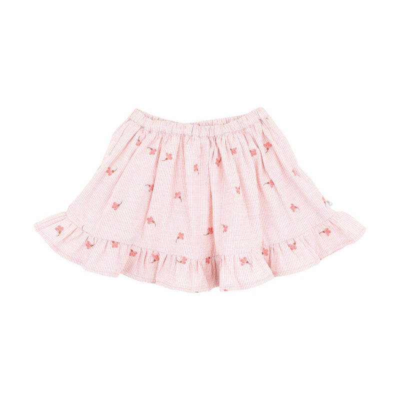 Perfect for twirling and sunny-day play, this embroidered frill skirt brings a touch of vintage charm to everyday adventures. With its soft pink stripe, delicate floral embroidery, and built-in shorts, it's made for comfort and whimsy in equal measure.