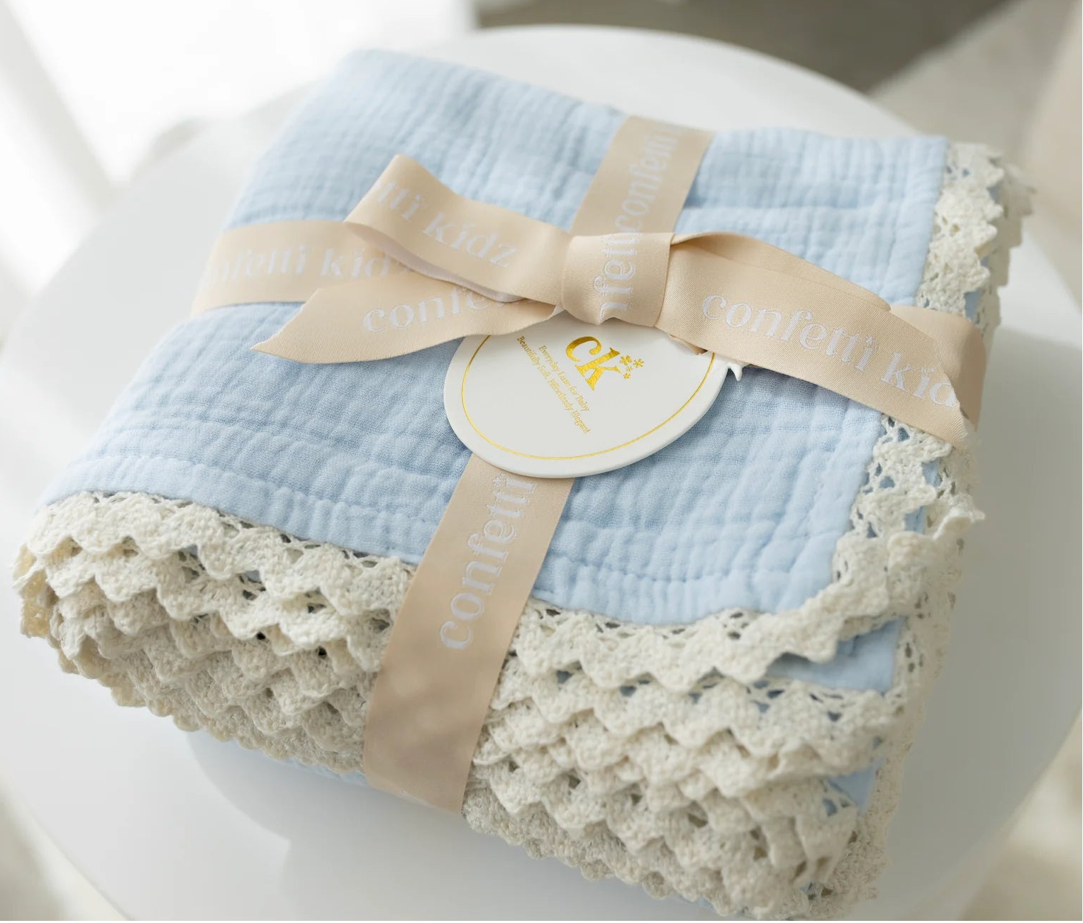 confetti kidz Classic Muslin Blanket | Soft Blue