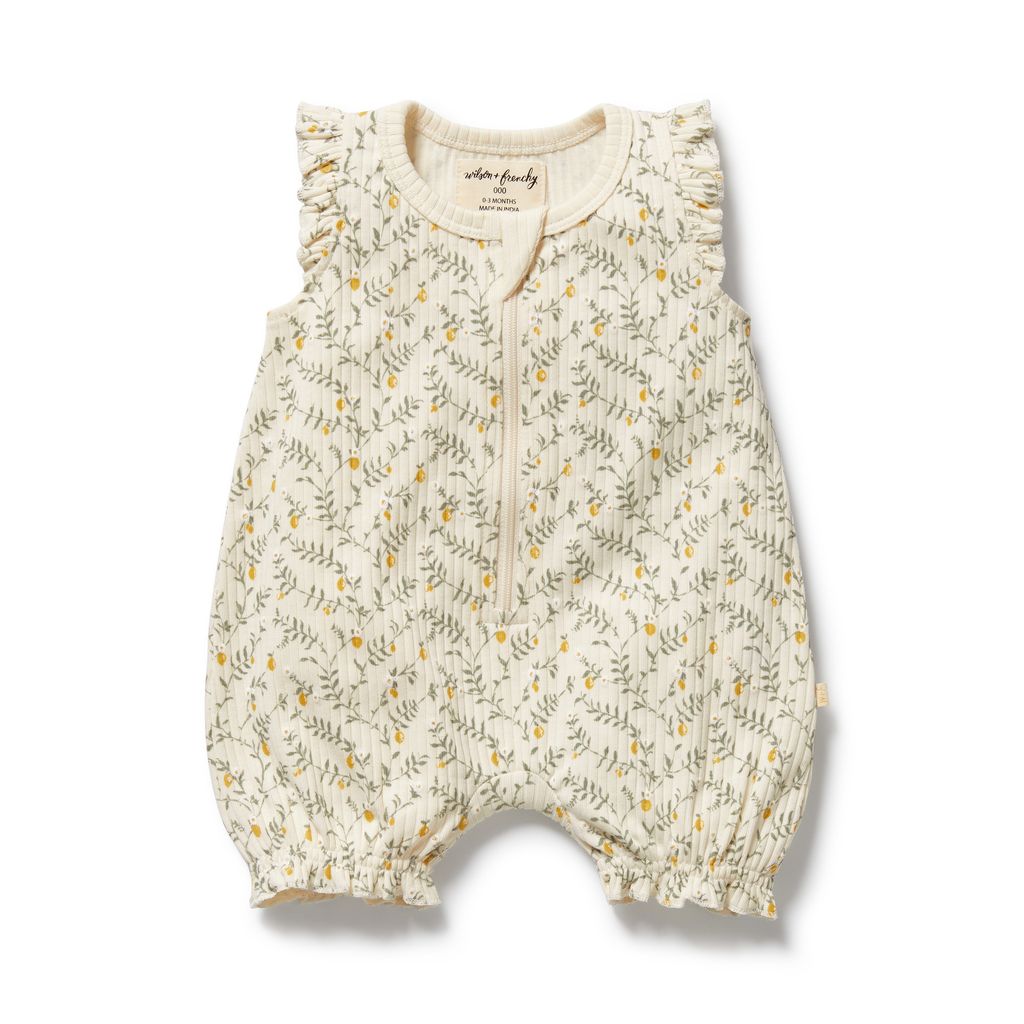 wilson + frenchy Organic Ruffle Zipsuit | Lemon Leaf