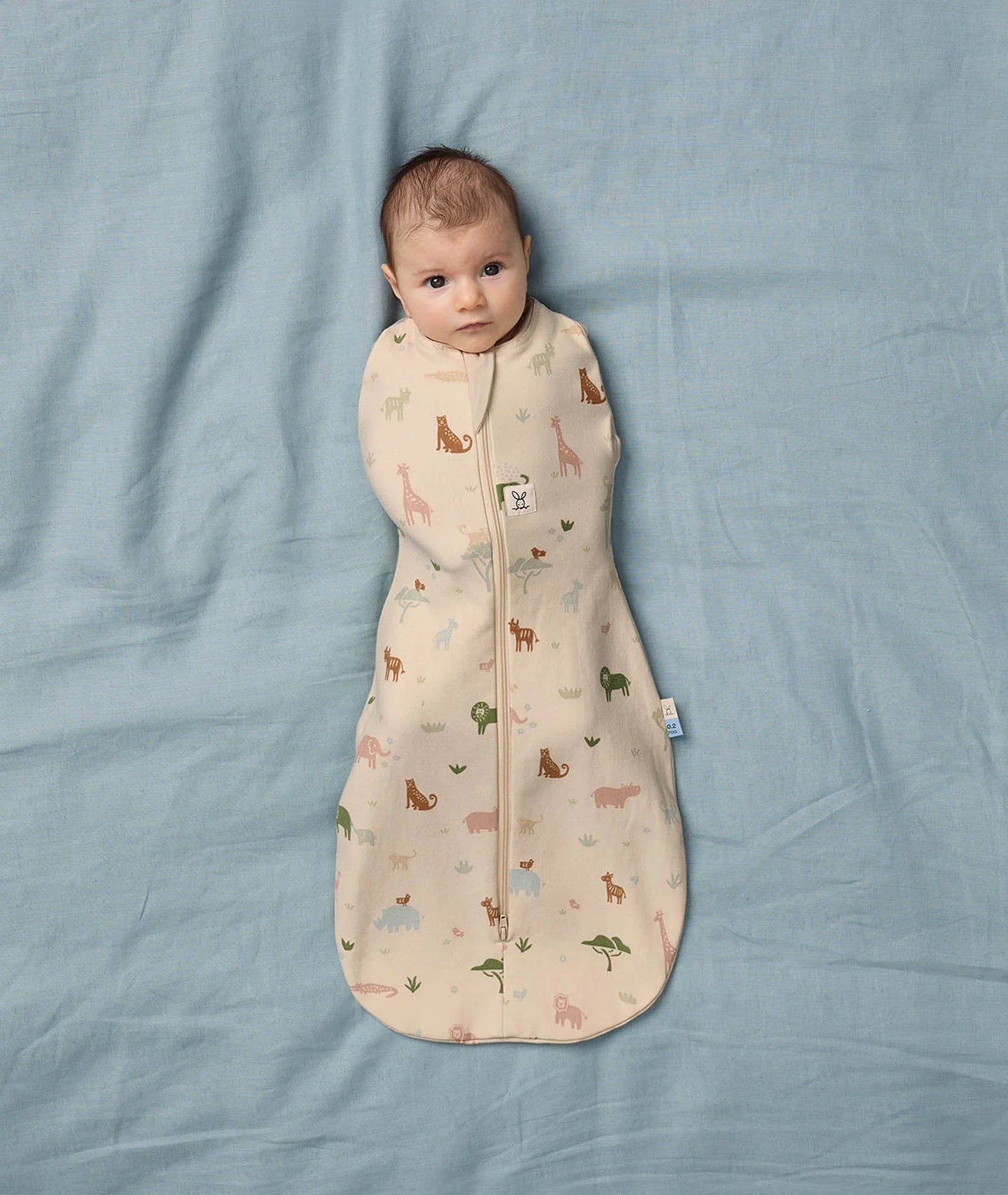 Our Cocoon 'no origami' baby Swaddle Bags are designer to be both easy to use and difficult to escape from. The simple zip up design will keep baby snug and securely swaddled without the need for complicated wrapping.