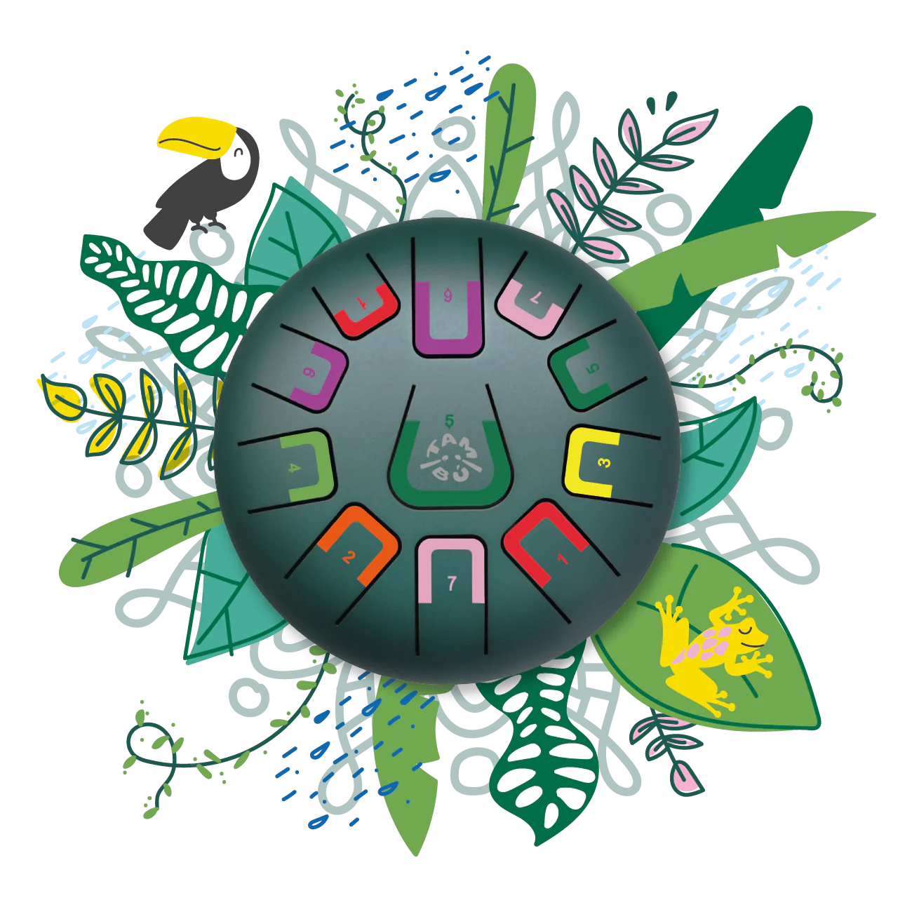 Tambú is an innovative tongue drum designed for all ages. It allows you to create harmonious melodies from the very first moment, with no prior musical knowledge required.