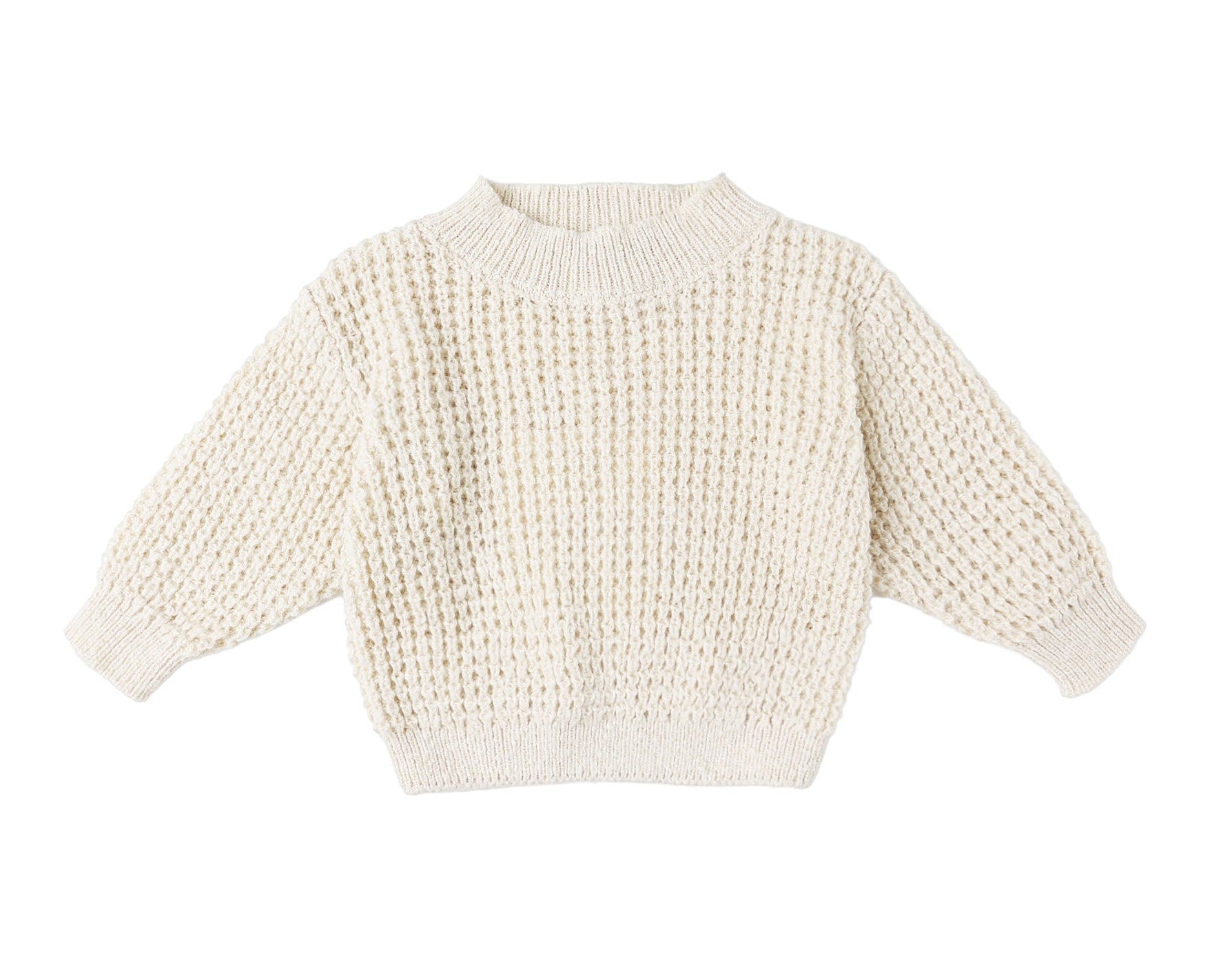 Adorable chunky knit sweater with ribbing at the sleeve and neck openings.