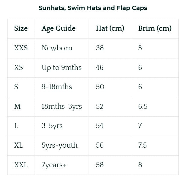 With a lovely wide brim, so you know they are protected from the sun while enjoying all the outdoor fun this summer (Measures for each size S: 6cm, M: 6.5cm, L: 7cm, XL: 7.5cm).