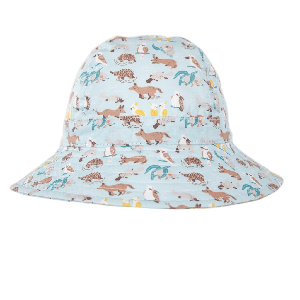Celebrate the beauty of the Australian bush with this gorgeous bucket hat, featuring much-loved native animals including koalas, kookaburras, platypuses, cockatoos and more. The outside showcases this fun Aussie animals print, while the inside is finished with a classic chestnut and cream check. Both prints are original artworks by Melbourne artist Jacinta Weir from Two Little Ducklings.